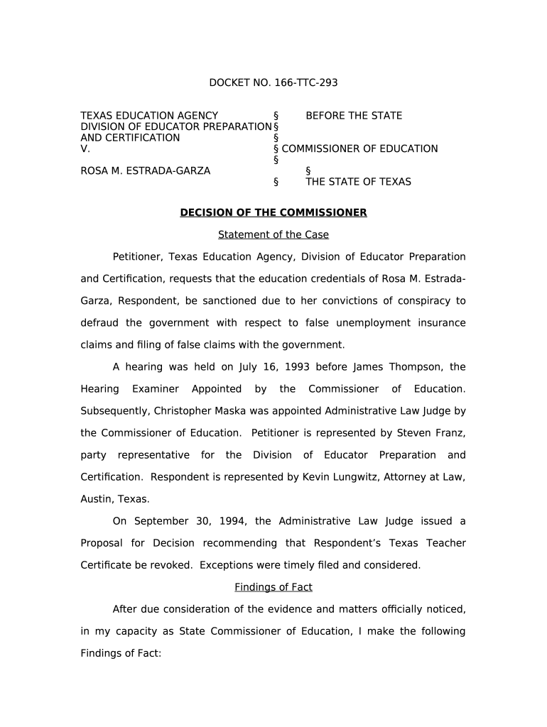 - Get the Proposal for Decision. TEA, DEPC v. Rosa Estrada-Garza form in PDFfiller’s catalogue.