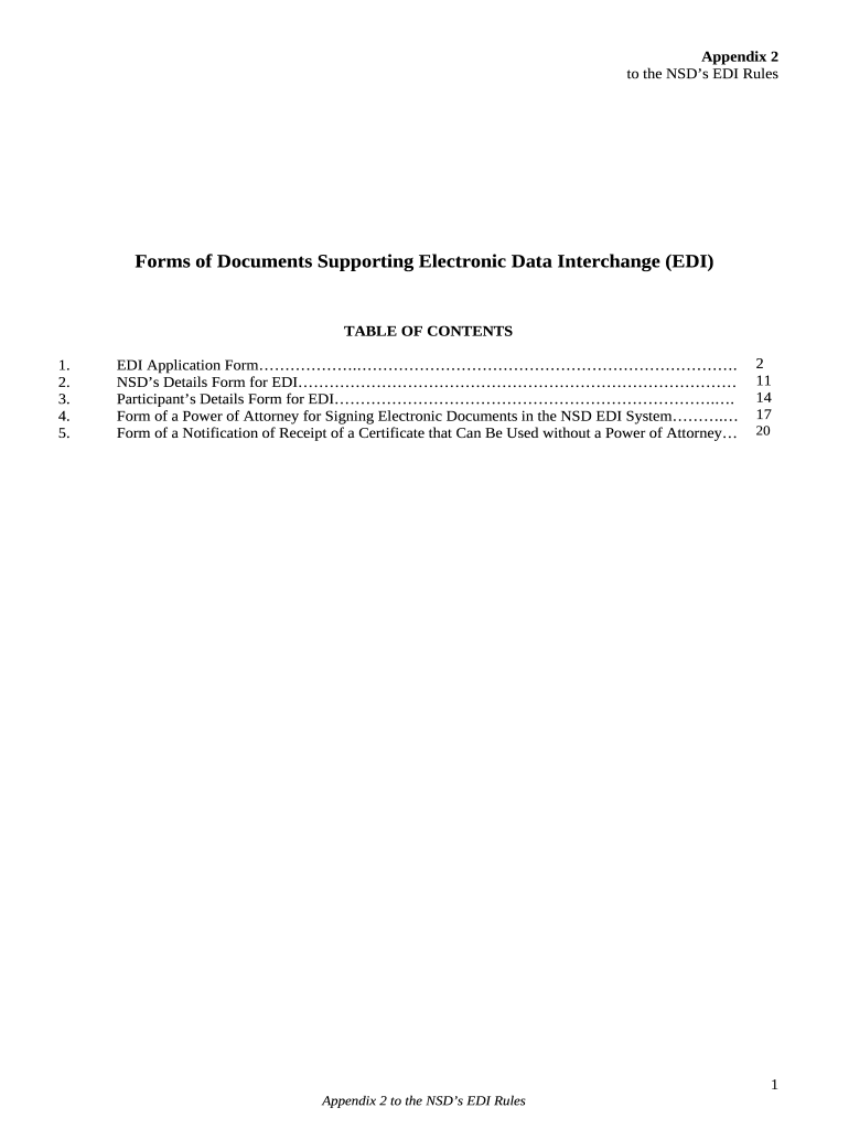 The to the NSD's EDI Rules is a writable document which can be filled-out and signed for certain purpose. In that case, it is furnished to the exact addressee in order to provide specific details of certain kinds. The completion and signing is possible or with an appropriate tool like PDFfiller. Such tools help to send in any PDF or Word file without printing out. It also lets you customize its appearance according to your requirements and put a legal e-signature. Upon finishing, the user ought to send the to the NSD's EDI Rules to the respective recipient or several recipients by mail and even fax. PDFfiller offers a feature and options that make your document of MS Word extension printable. It includes various settings for printing out appearance. It does no matter how you'll distribute a document - physically or electronically - it will always look neat and firm. To not to create a new writable document from the beginning every time, turn the original document as a template. After that, you will have an editable sample.