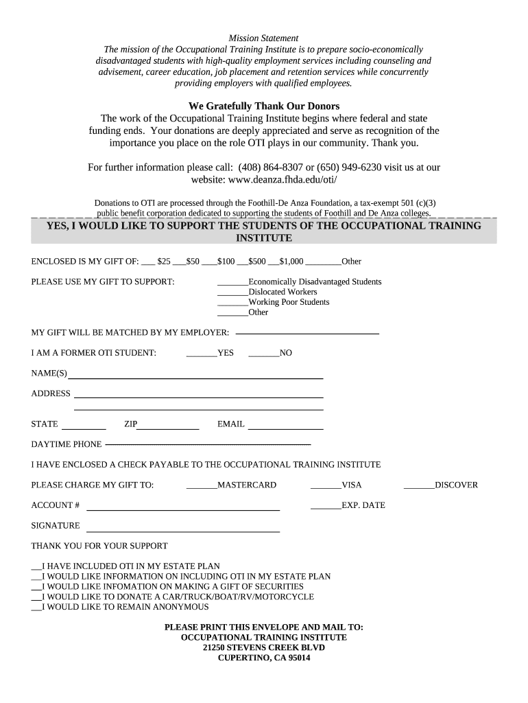 Instructions for the The mission of the Occupational Training Institute is to prepare disadvantaged students with high-quality employment services i form
