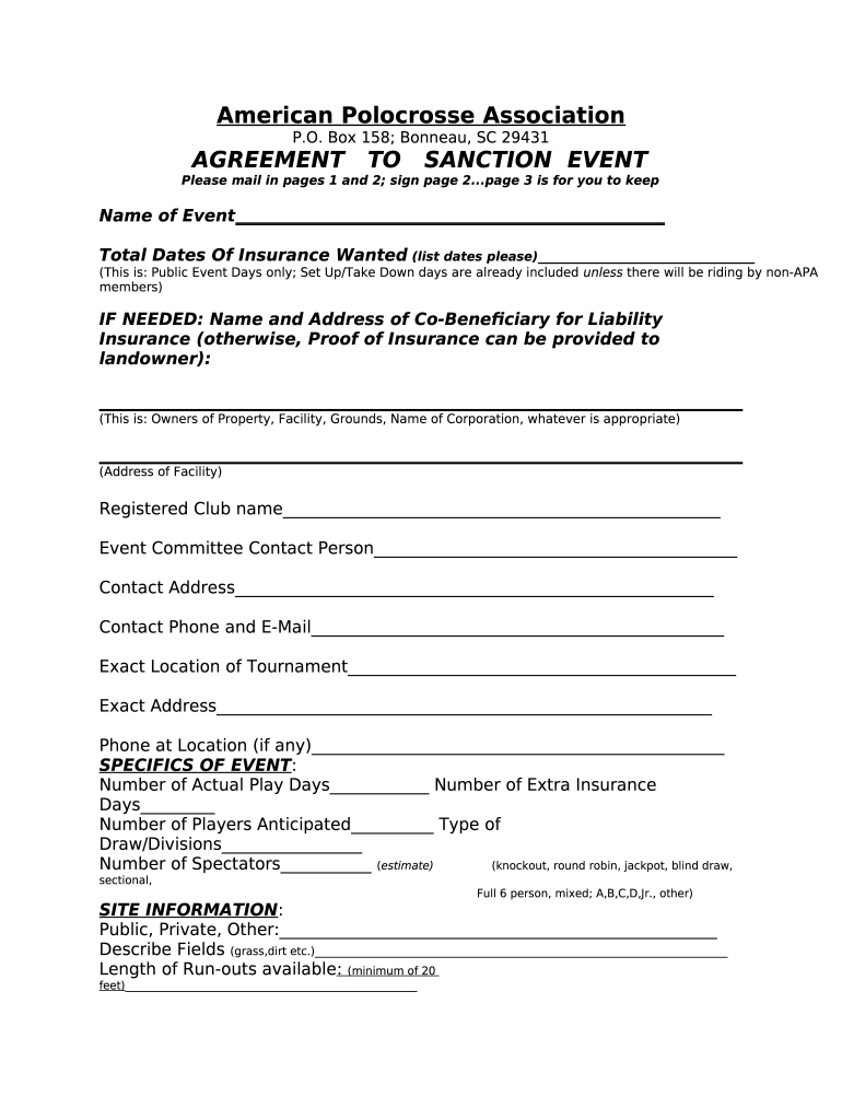 How to fill agreement to sanction event - American Polocrosse Association word template