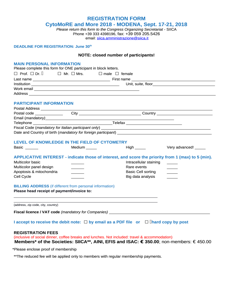 Instructions for the Please return this to the Congress Organizing Secretariat - SIICA form