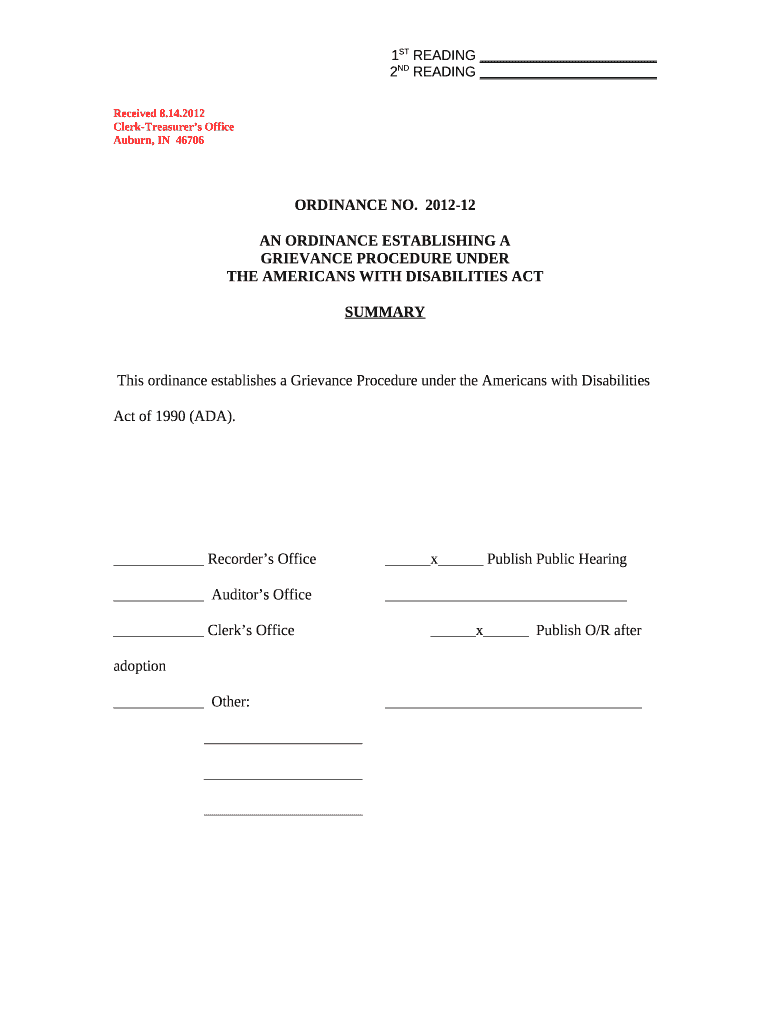 The Auburn, IN46706 is a Word document that should be submitted to the relevant address in order to provide certain information. It needs to be completed and signed, which may be done in hard copy, or using a certain software e. g. PDFfiller. This tool lets you complete any PDF or Word document directly in your browser, customize it depending on your needs and put a legally-binding e-signature. Once after completion, the user can easily send the Auburn, IN46706 to the appropriate individual, or multiple recipients via email or fax. The template is printable as well because of PDFfiller feature and options presented for printing out adjustment. Both in digital and physical appearance, your form will have got organized and professional outlook. Also you can save it as the template to use it later, without creating a new blank form over and over. All you need to do is to amend the ready template.
