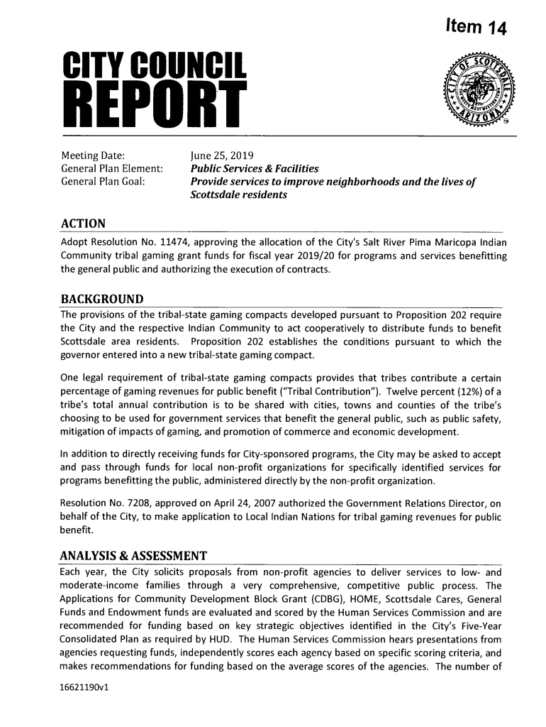 Item 14env cuNnREPORfMeeting Date: General Plan Element: General Plan Goal:June 25, 2019, Public Services & Facilities Provide services to improve neighborhoods and the lives of Scottsdale residentsACTION