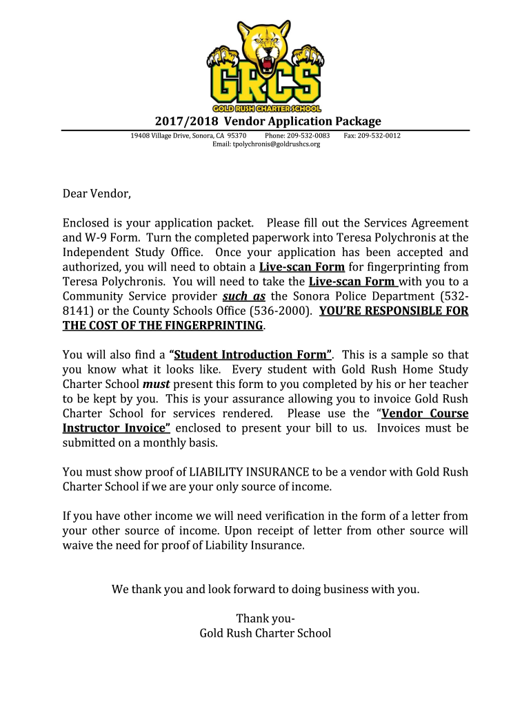 2017/2018 Vendor Application Package