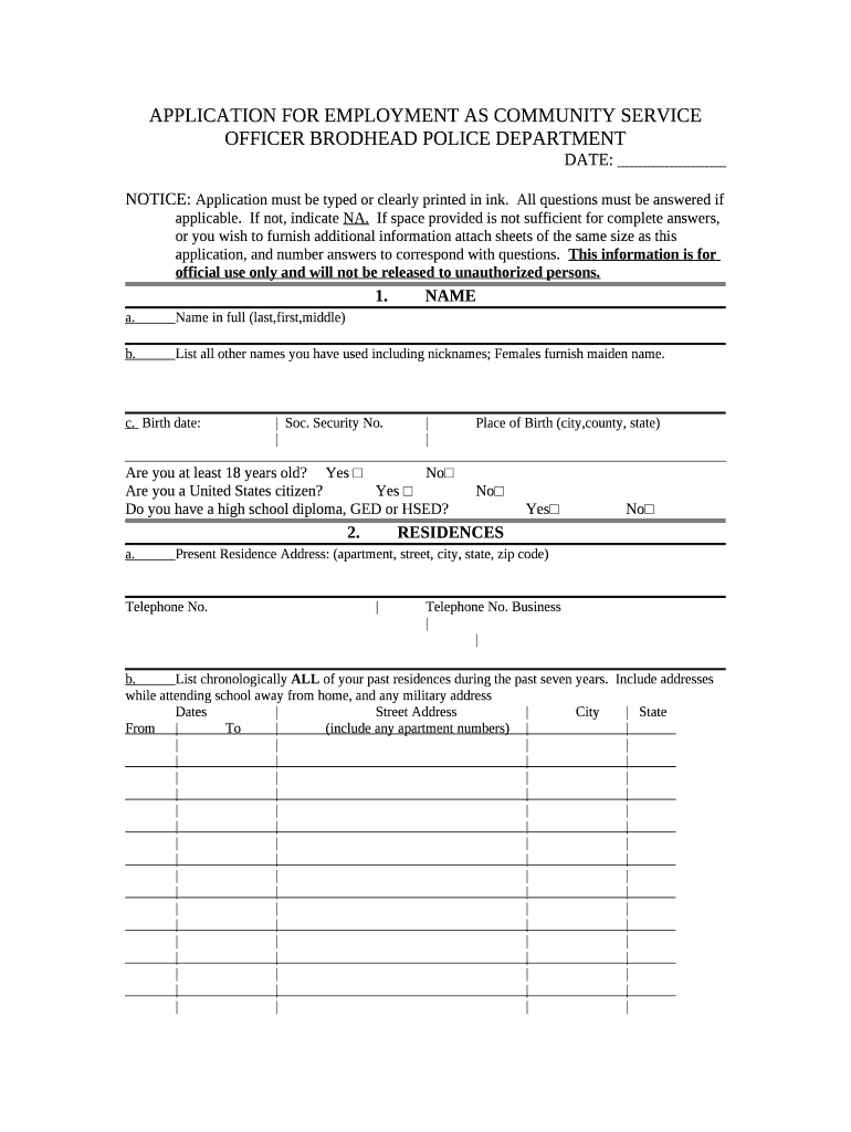 APPLICATION FOR EMPLOYMENT AS COMMUNITY SERVICE OFFICER BRODHEAD POLICE DEPARTMENT word template: frequently asked questions