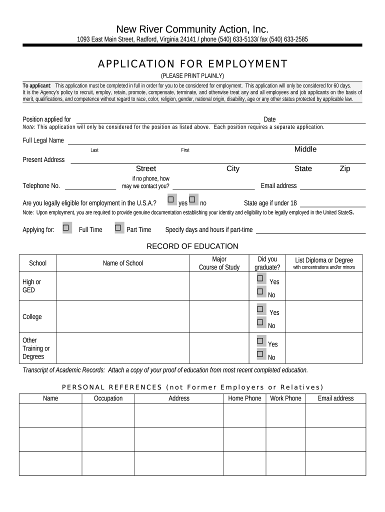 Instructions for the NR Community Action.application for employment(0900980.DOC;1). RKE# 0900980.DOC-1, 102312-00001-01 form