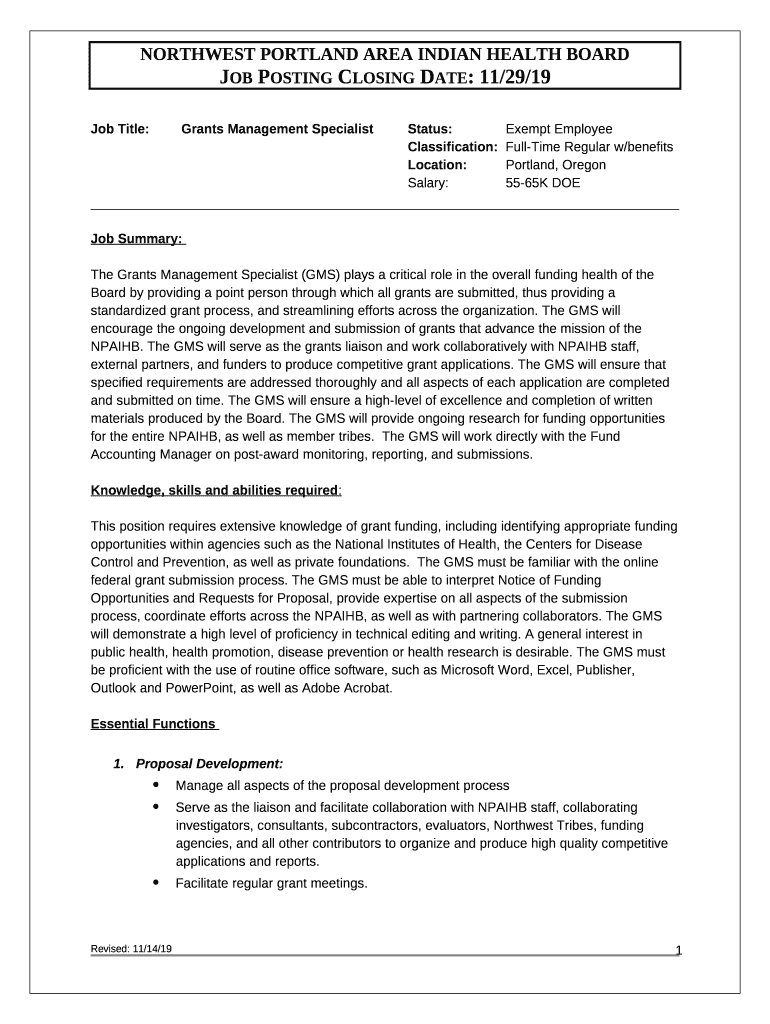 Template Job Title: Health Resources Coordinator Issue Date: instructions