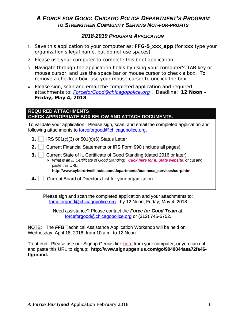 Instructions for the A Force for Good Application - Chicago Police Department form
