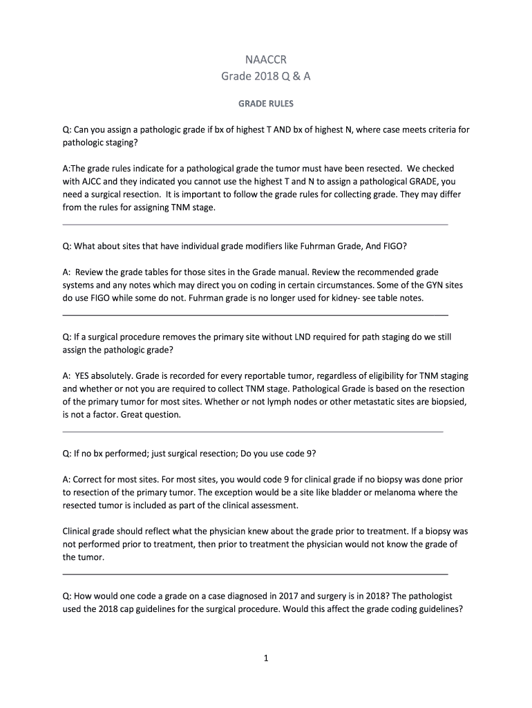 NASCAR Grade 2018 Q & A GRADE RULES Q: Can you assign a pathologic grade if bx of highest T AND bx of highest N, where case meets criteria for pathologic staging? A:The grade rules indicate for a