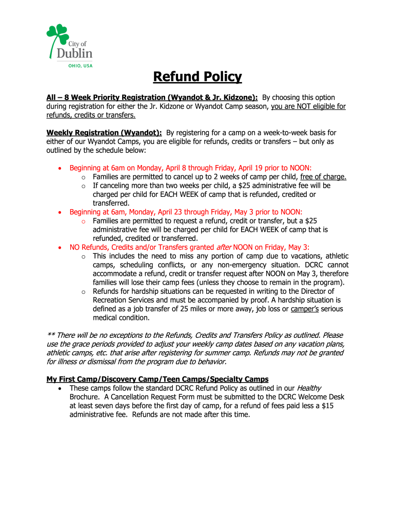 Refund Policy All 8 Week Priority Registration (Wyandot & Jr. Kid zone): By choosing this option during registration for either the Jr. Kid zone or Wyandot Camp season, you are NOT eligible for refunds,