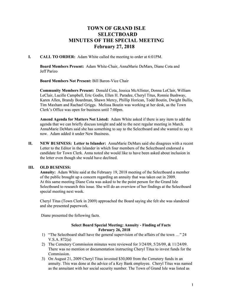 Edit your new grand isle selectboard form online