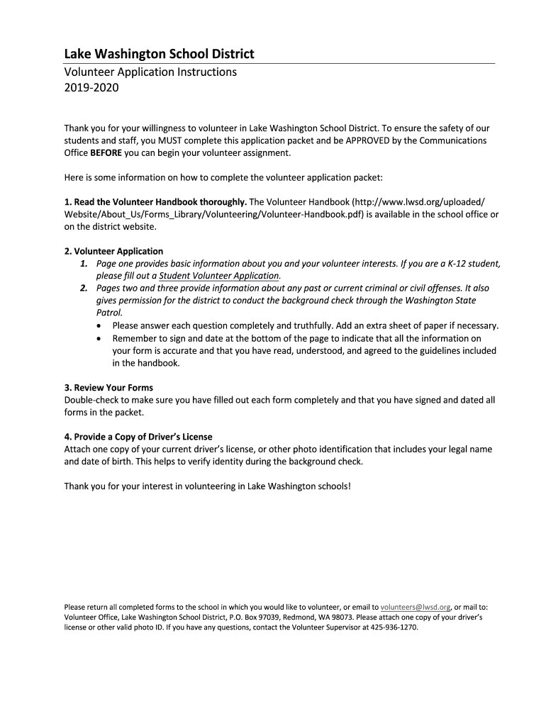 Get the free Thank you for your willingness to volunteer in Lake Washington School District