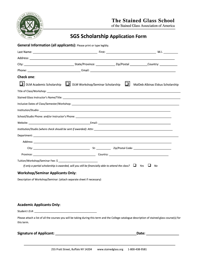 of the Stained Glass Association of AmericaStained Glass School 2020 Annual Scholarships