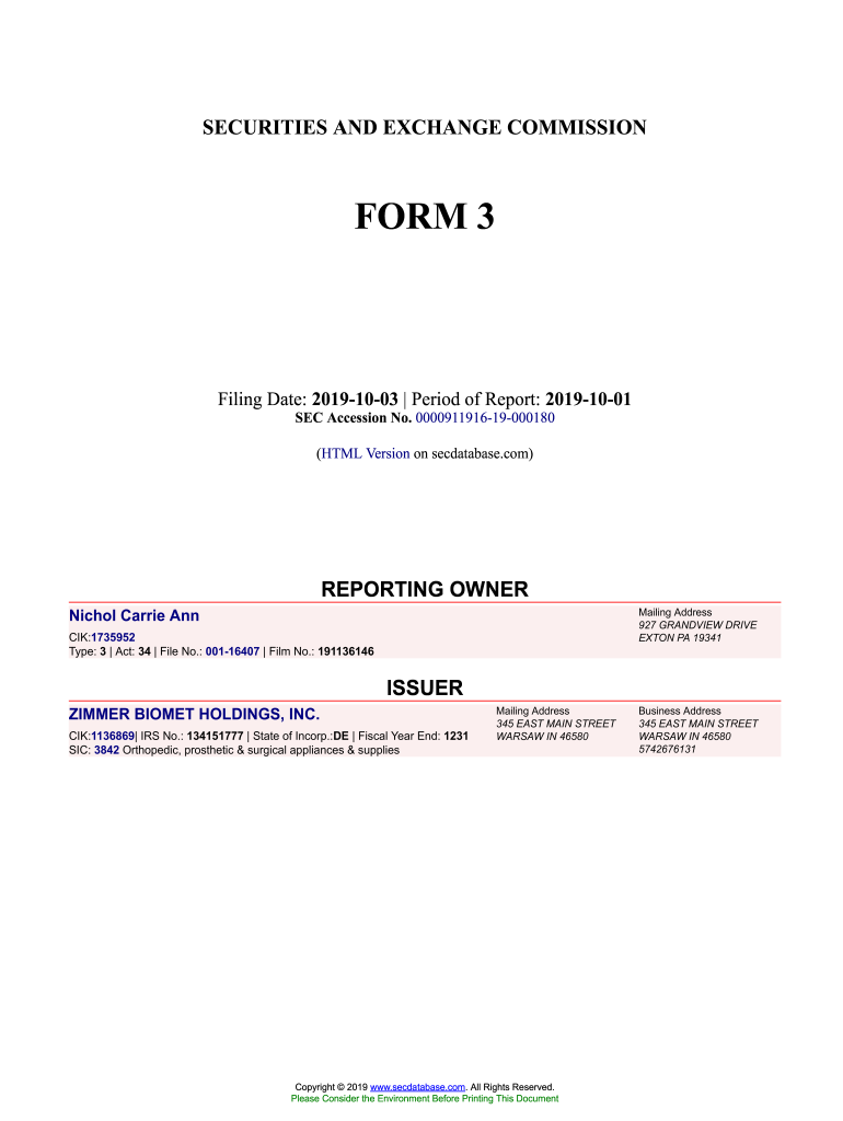 Get the free Nichol Carrie Ann Form 3 Filed 2019-10-03. Accession Number