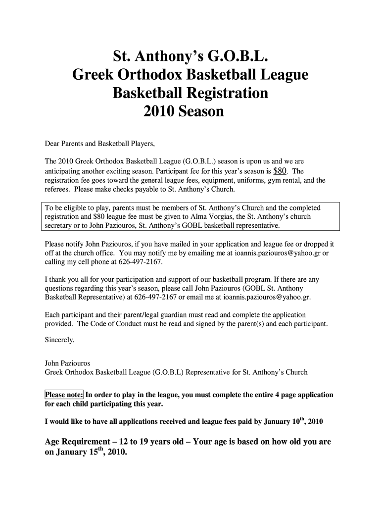 The 2010 Greek Orthodox Basketball League (G.O.B.L.) season is upon