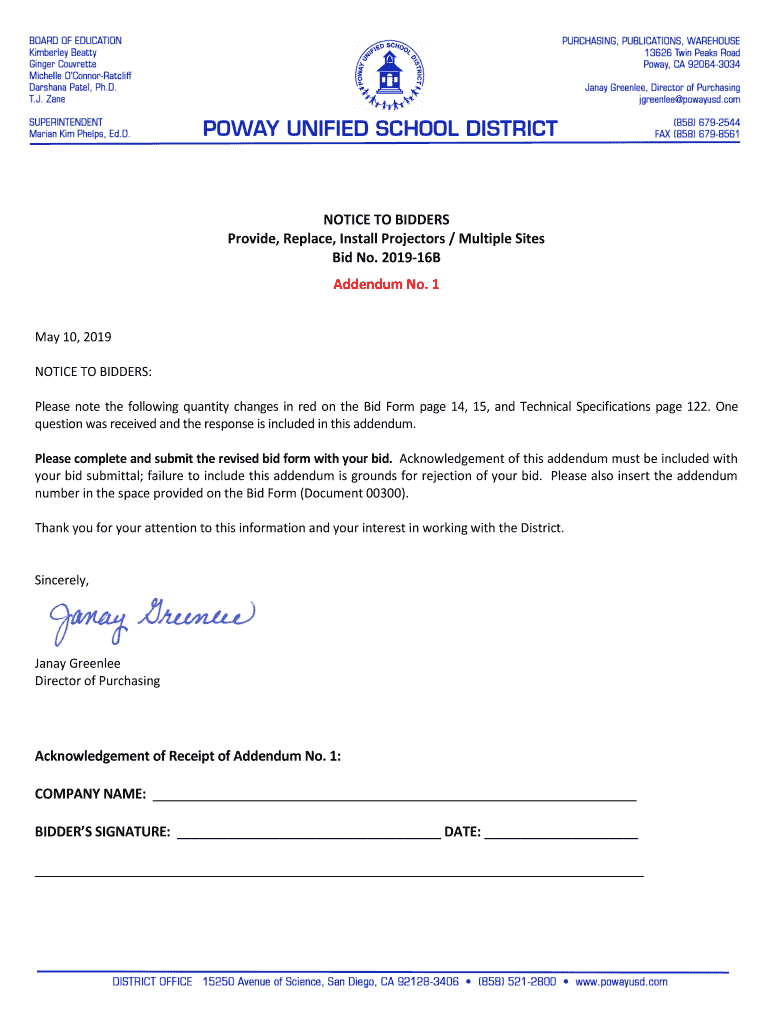 Get the free NOTICE TO BIDDERS Provide, Replace, Install Projectors ...