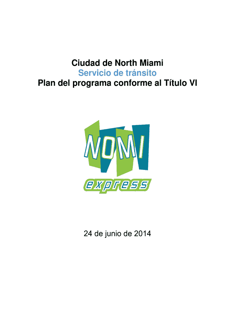 Ciudad de North Miami Service de transit Plan Del program conform all Truly VI24 de junior de 2014Servicio de transit DE la Ciudad de North Miami Plan Del program conform all Truly VI (El “Plan