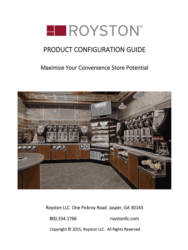 PRODUCTCONFIGURATIONGUIDE MaximizeYourConvenienceStorePotentialRoystonLLCOnePickroyRoadJasper,GA30143 800.334.1766roystonllc.comCopyright2015,RoystonLLC. AllRightsReservedPRODUCT CONFIGURATION GUIDE