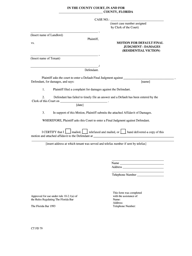 How to Fill Out the Motion for Default Final Judgment - Damages Online