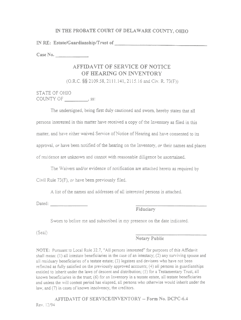 IN THE PROBATE COURT OF DELAWARE COUNTY, OHIO