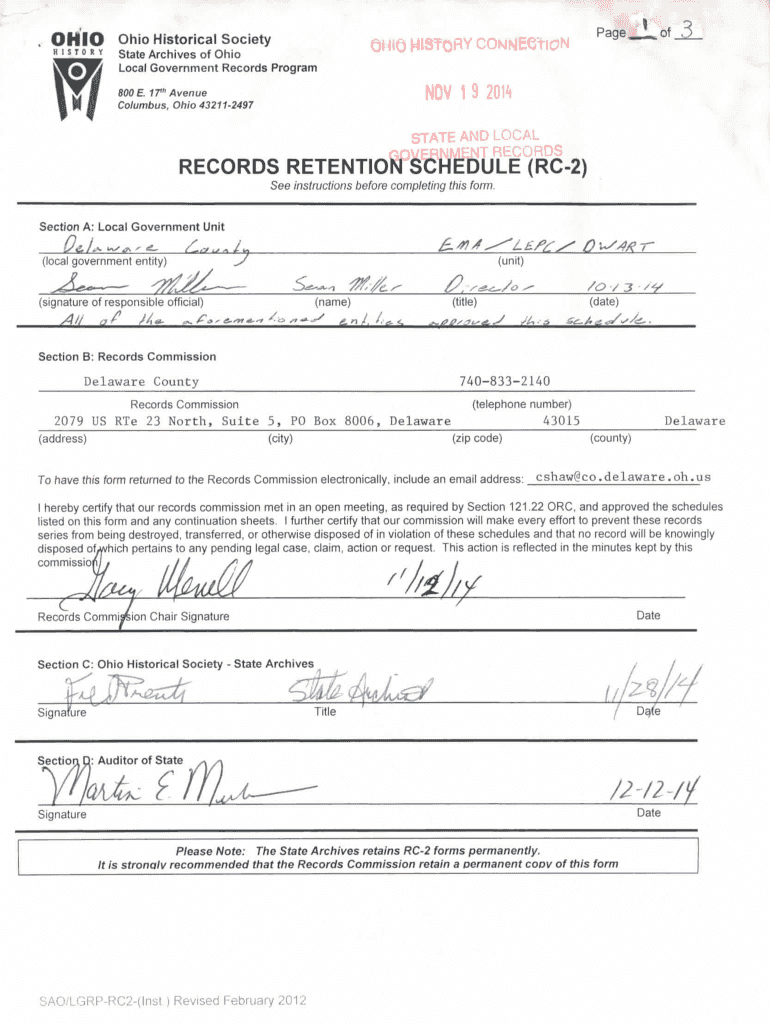 OHIO w HV0vQ of Page. Ohio Historical Society State Archives of Ohio HIS? Fly COHMEetlON 3 Local Government Records Program NOV 1 9 2014 800 E. 17 Avenue Columbus, Ohio 432112497 STATE AND LOCAL RECORDS