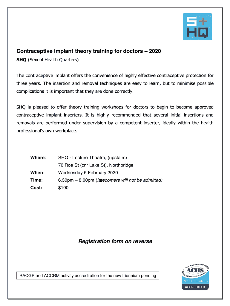 Contraceptive implant theory training for doctors 2020 SHE (Sexual Health Quarters) The contraceptive implant offers the convenience of highly effective contraceptive protection for three years. The