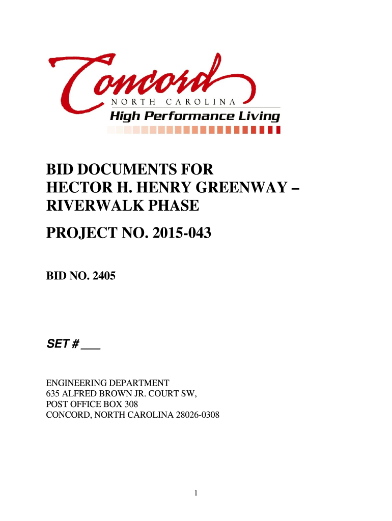 BID DOCUMENTS FOR HECTOR H. HENRY GREENWAY RIVERBANK PHASE PROJECT NO. 2015043 BID NO. 2405SET # ENGINEERING DEPARTMENT 635 ALFRED BROWN JR. COURT SW, POST OFFICE BOX 308 CONCORD, NORTH CAROLINA 2802603081TABLE