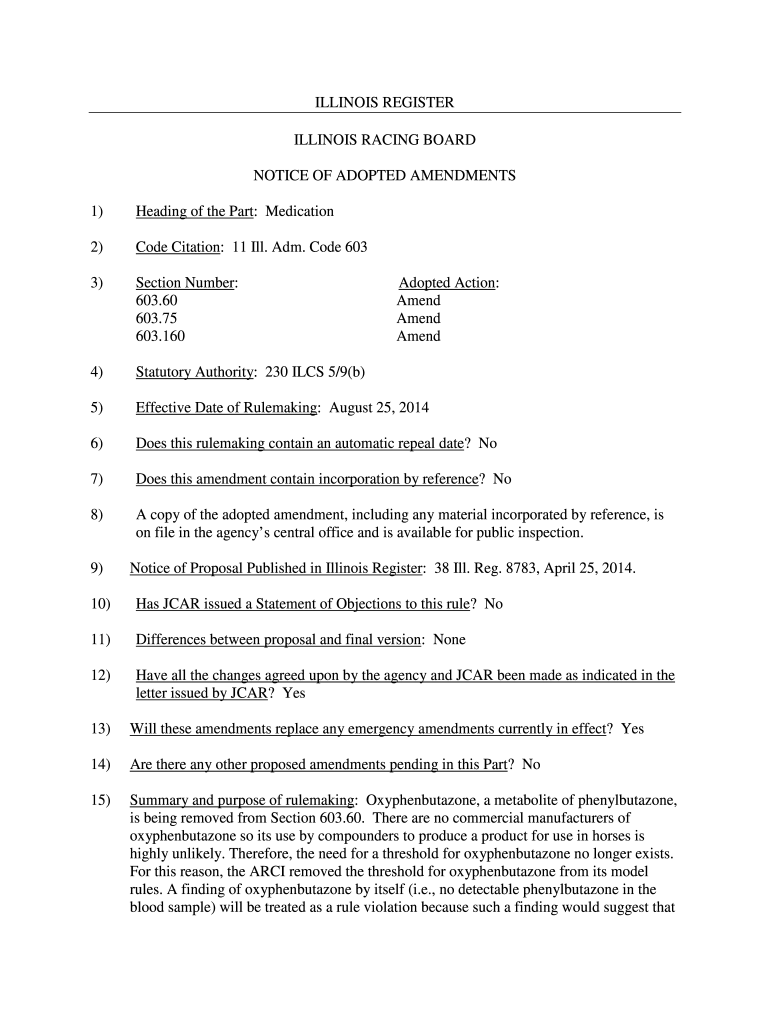 Get the free Notice of Adopted Rule 603 - Illinois.gov
