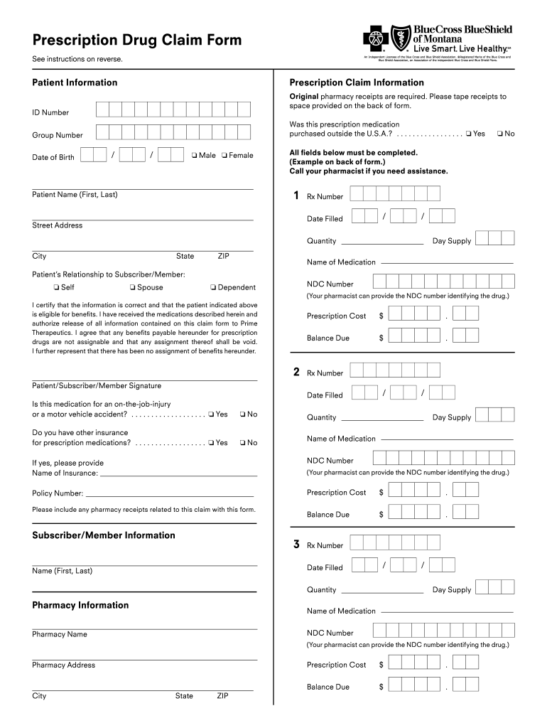 Prescription Drug Claim Form See instructions on reverse. An Independent Licensee of the Blue Cross and Blue Shield Association. Registered Marks of the Blue Cross and Blue Shield Association, an
