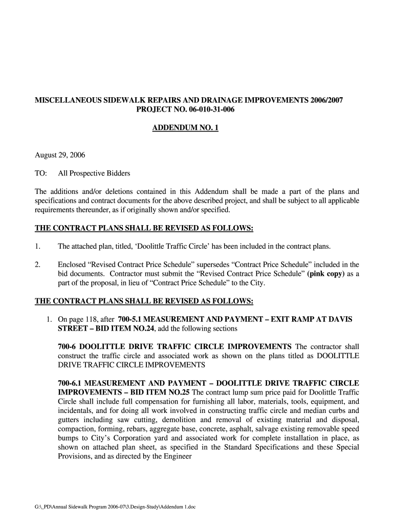 MISCELLANEOUS SIDEWALK REPAIRS AND DRAINAGE IMPROVEMENTS 2006/2007