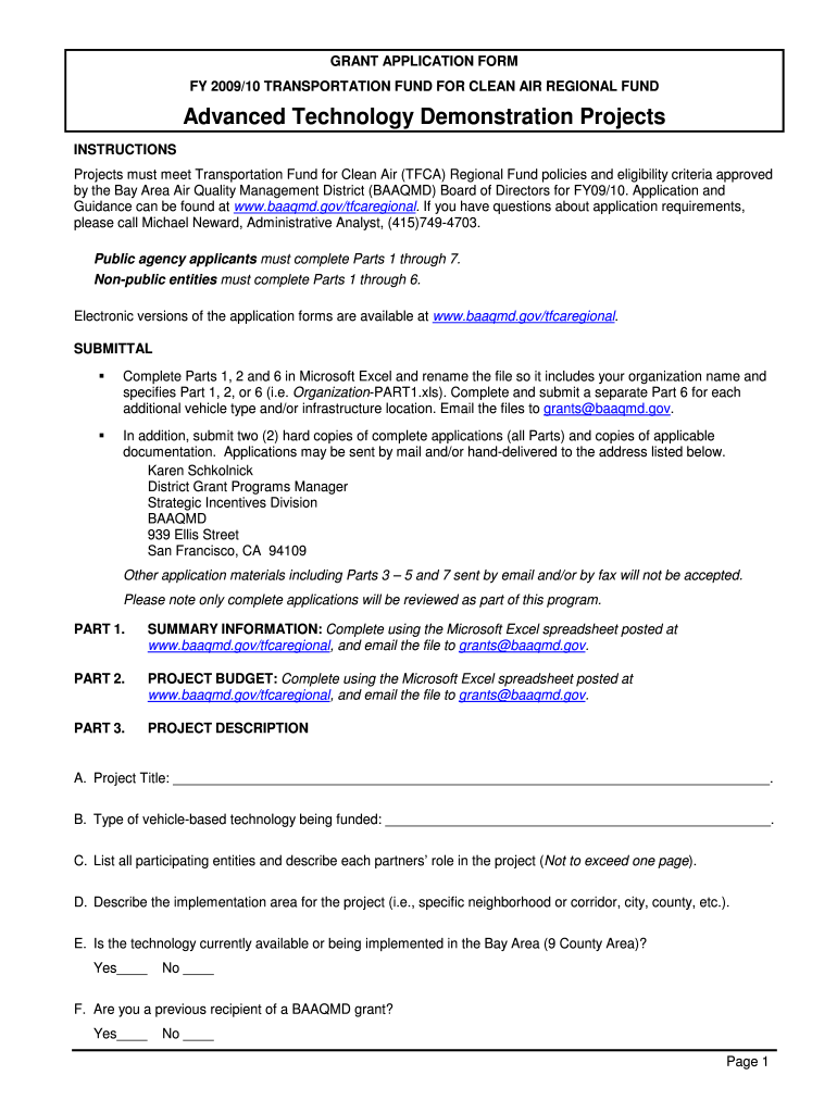Entities participating in programs or projects funded by the Transportation Fund for Clean Air are typically required to file an Advanced Demonstration - TFCA.