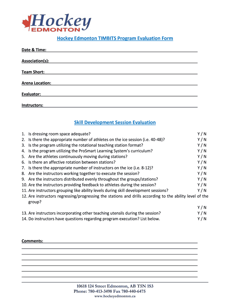 Get the free Hockey Edmonton TIMBITS Program Evaluation Form Skill ...
