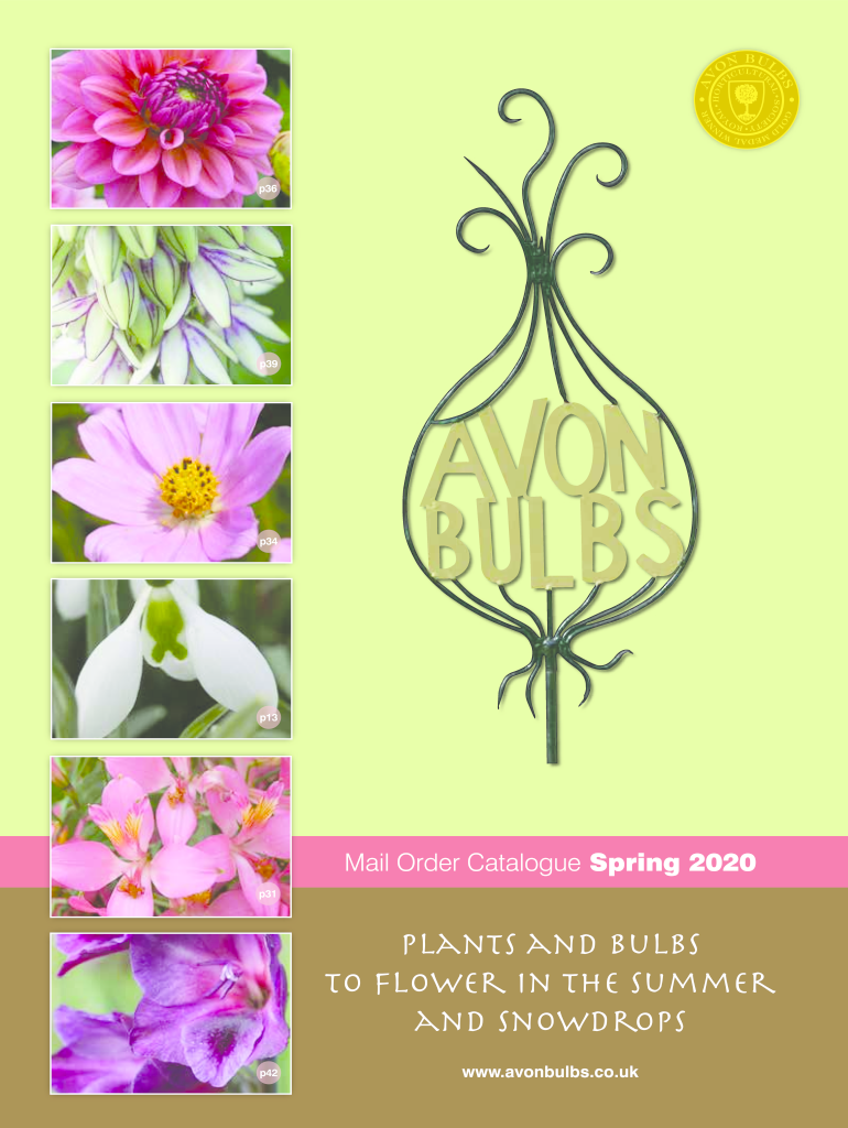 P36p39p34p13Mail Order Catalog Spring 2020 p31Plants and bulbs to flower in the summer and snowdrops p42www.avonbulbs.co.until: 01460 242 177 Email: info avonbulbs.co.UK Website: www.avonbulbs.co.ukAvon