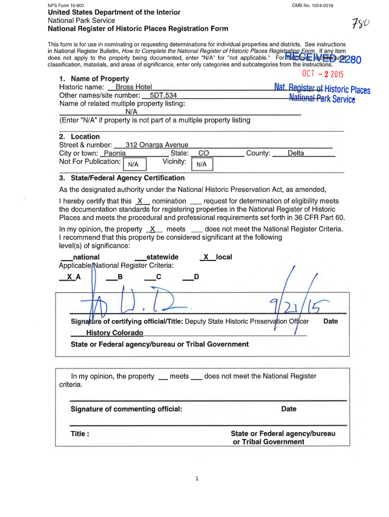 NPS Form 10900OMB No. 10240018United States Department of the Interior National Park Service National Register of Historic Places Registration Form This form is for use in nominating or requesting