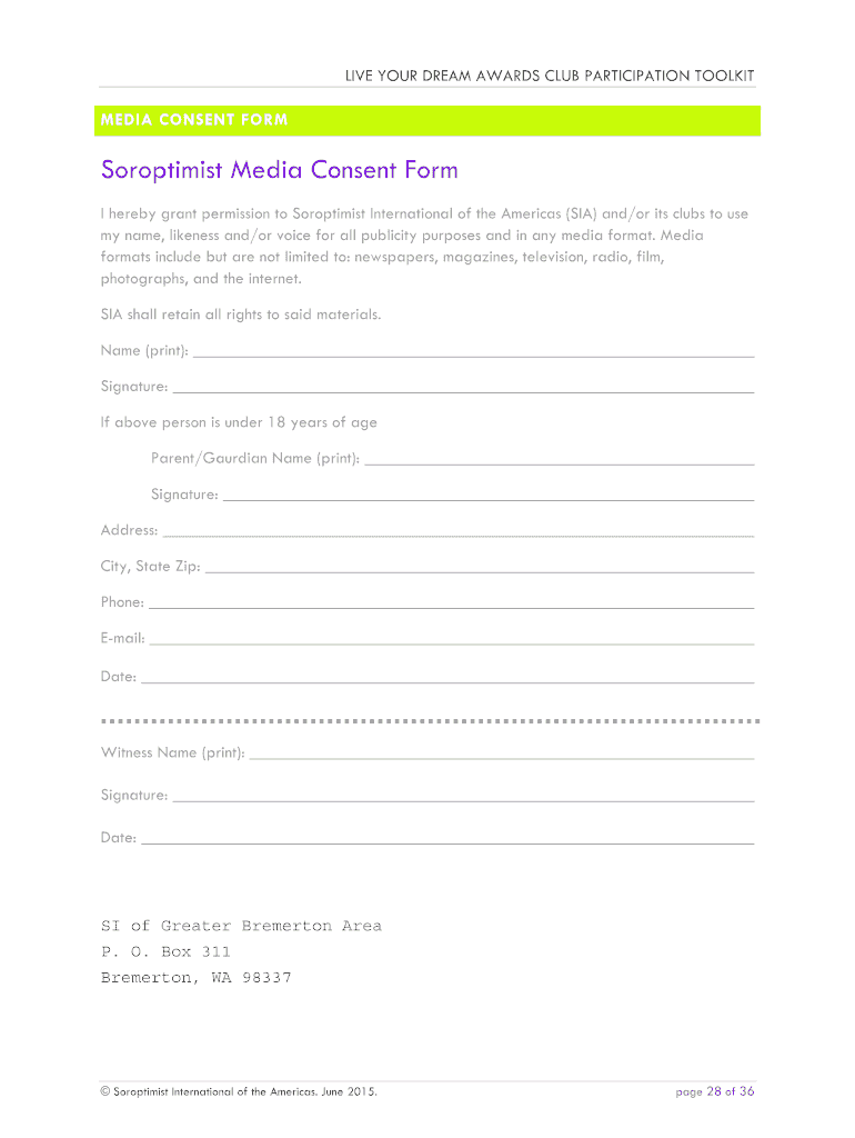 Anyone who is involved or participating in Soroptimist activities, events, or programs and wishes to give their consent or refusal for the use of their media, needs to fill out the soroptimist media consent form.