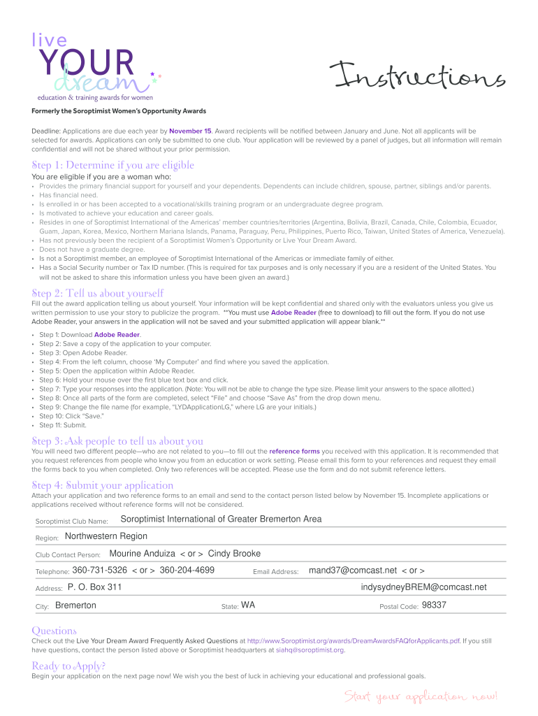 Ready to begin a new life? Since 1972, the Optimist Live Your Dream Awards program (formerly the Women's Opportunity Awards) has disbursed more than $30 million to tens of thousands of women who have