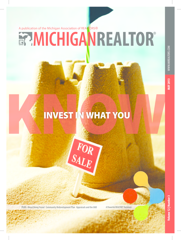 WWW.MIREALTORS.COM MAY 2013KNOW PLUS: About Being Found Community Redevelopment Plan Appraisals and the USDA Powerful REALTOR DatabaseVolume 12 Number 3INVEST IN WHAT Nowhere We Grow Again Are you...