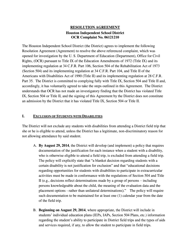Get the free Houston Independent School District (PDF). Resolution Agreement