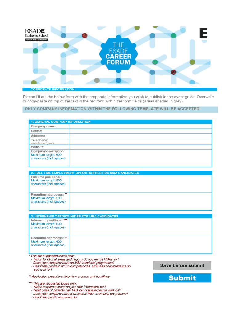 All students enrolled in the ESADE MBA program are required to file form Esade MBA Career.