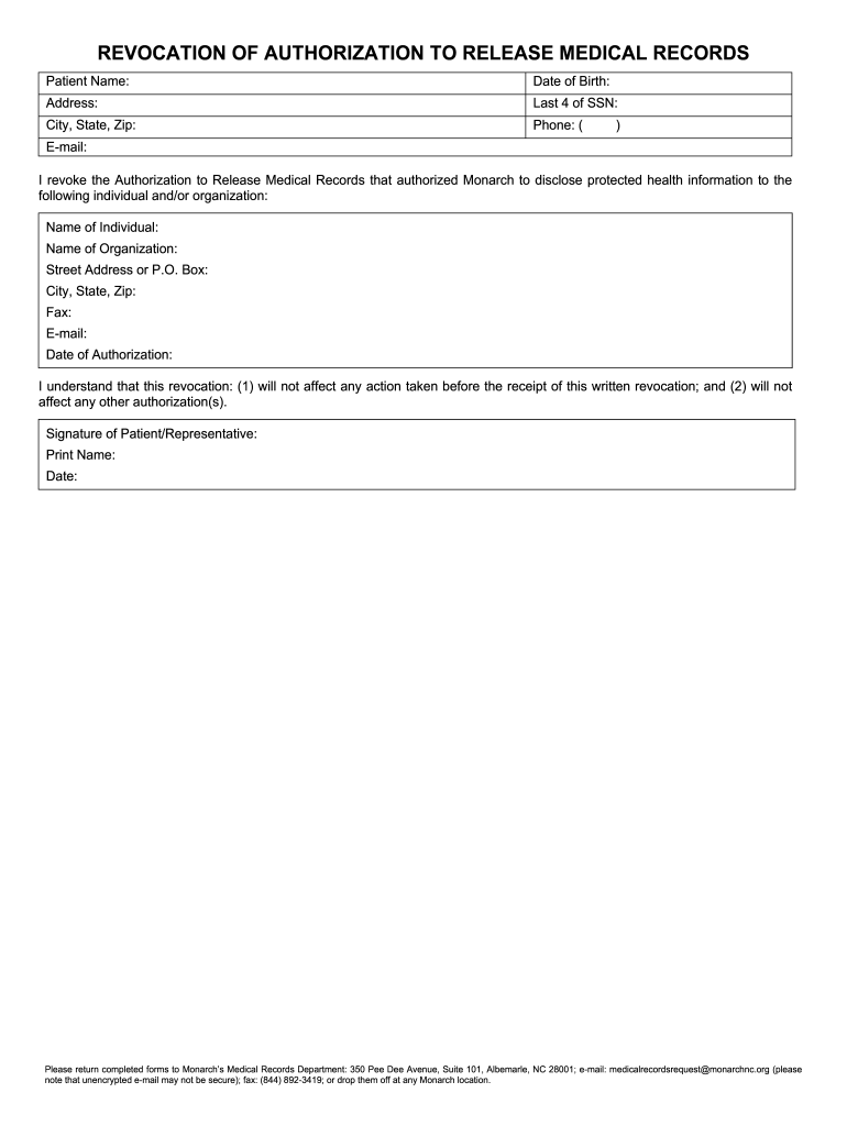 Get the free Authorization to Release Medical Records and Revocation of Authorization to Release ...