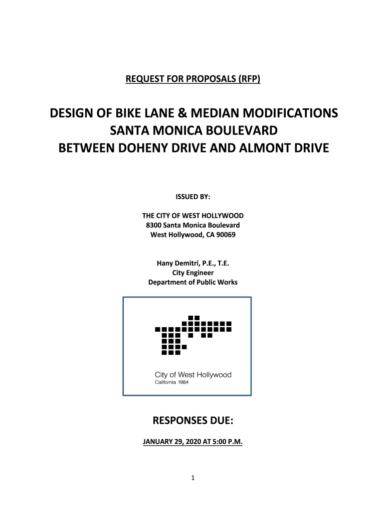 REQUEST FOR PROPOSALS (RFP)DESIGN OF BIKE LANE & MEDIAN MODIFICATIONS SANTA MONICA BOULEVARD BETWEEN A DOZEN DRIVE AND ALMOST DRIVE ISSUED BY: THE CITY OF WEST HOLLYWOOD 8300 Santa Monica Boulevard