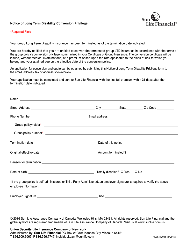 *Required Fielder group Long Term Disability Insurance has been terminated as of the termination date indicated.