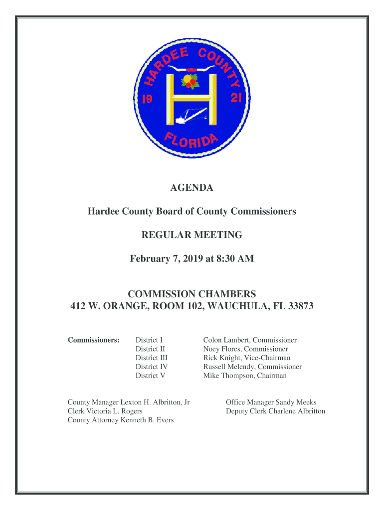 February 7, 2019, at 8:30 COMMISSION CHAMBERS