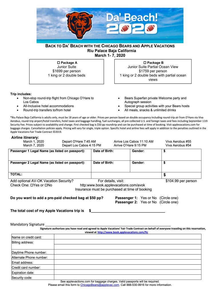 Get the free BACK TO A EACH WITH THE HICAGO BEARS AND PPLE ACATIONS Riu ...