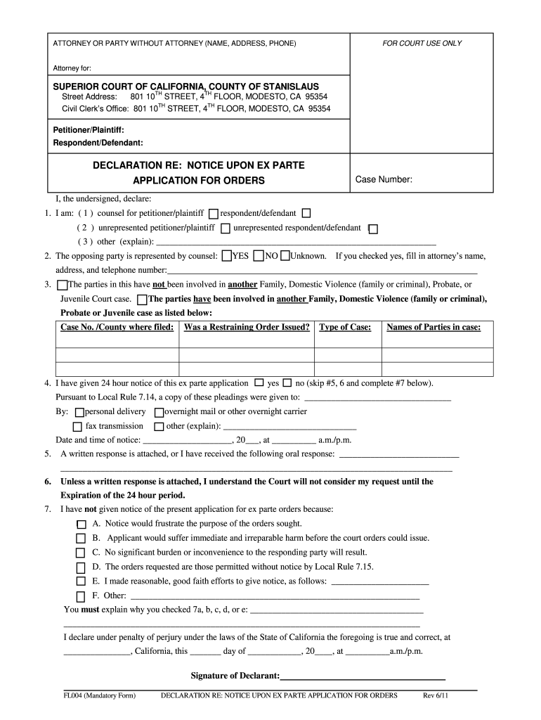 ATTORNEY OR PARTY WITHOUT ATTORNEY (NAME, ADDRESS, PHONE)FOR COURT USE ONLYAttorney for:SUPERIOR COURT OF CALIFORNIA, COUNTY OF STANISLAUS THTHStreet Address: 801 10 STREET, 4 FLOOR, MODESTO, CA 95354
