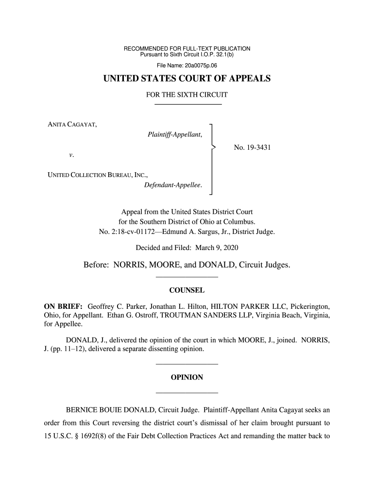 RECOMMENDED FOR FULLEST PUBLICATION Pursuant to Sixth Circuit I.O.P. 32.1(b) File Name: 20a0075p.06UNITED STATES COURT OF APPEALS FOR THE SIXTH CIRCUITANITA CANADA, PlaintiffAppellant, v. UNITED COLLECTION