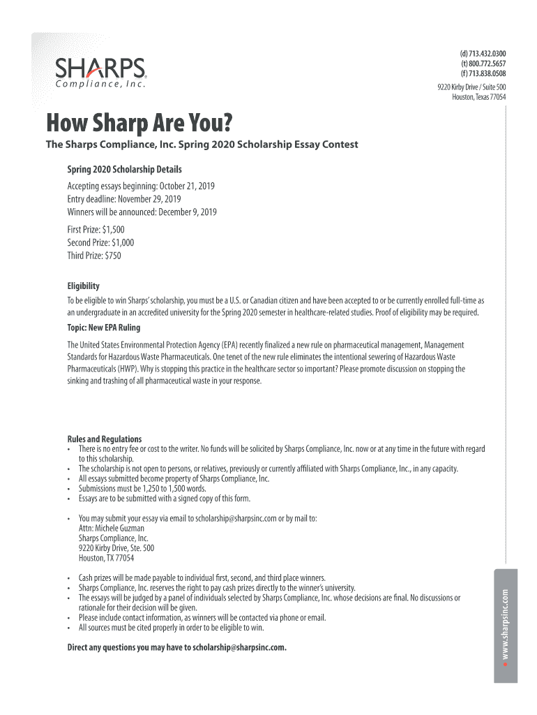 Houston, Texas 77054How Sharp Are You? The Sharps Compliance, Inc. Spring 2020 Scholarship Essay Contest