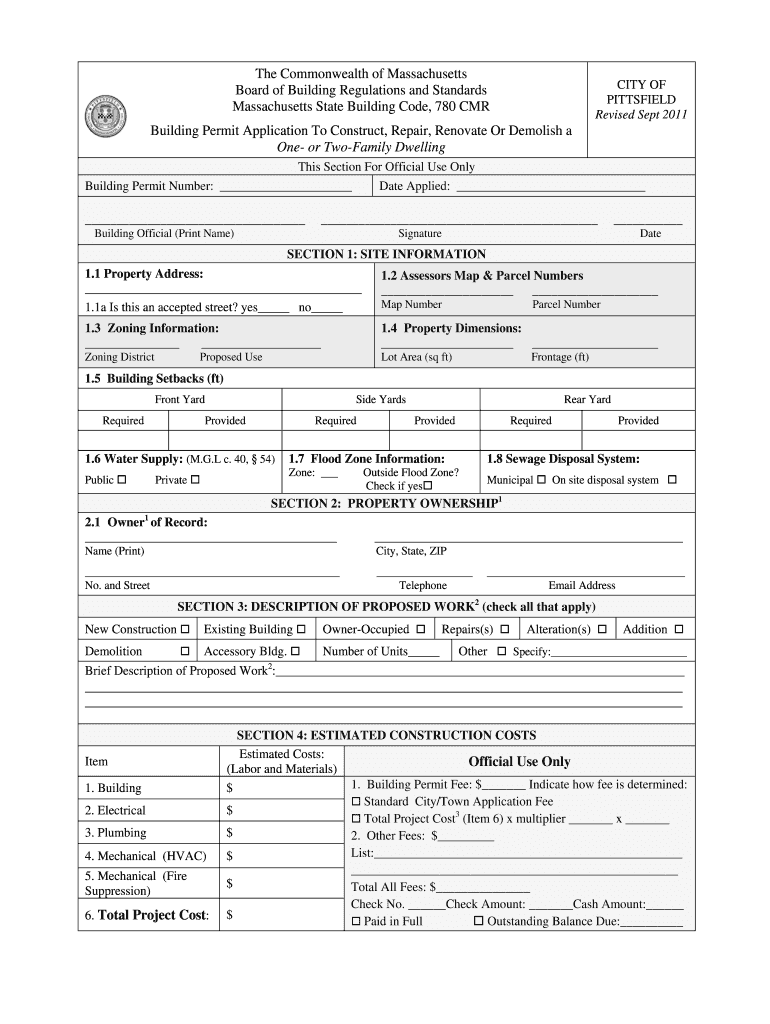Get the free Massachusetts State Building Permit Application
