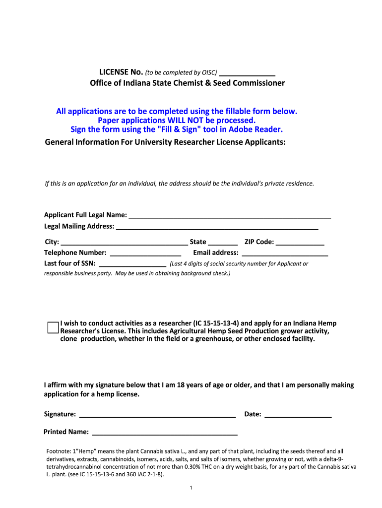 LICENSE No. (to be completed by DISC) Office of Indiana State Chemist & Seed Commissioner All applications are to be completed using the fillable form below. Paper applications WILL NOT be processed.