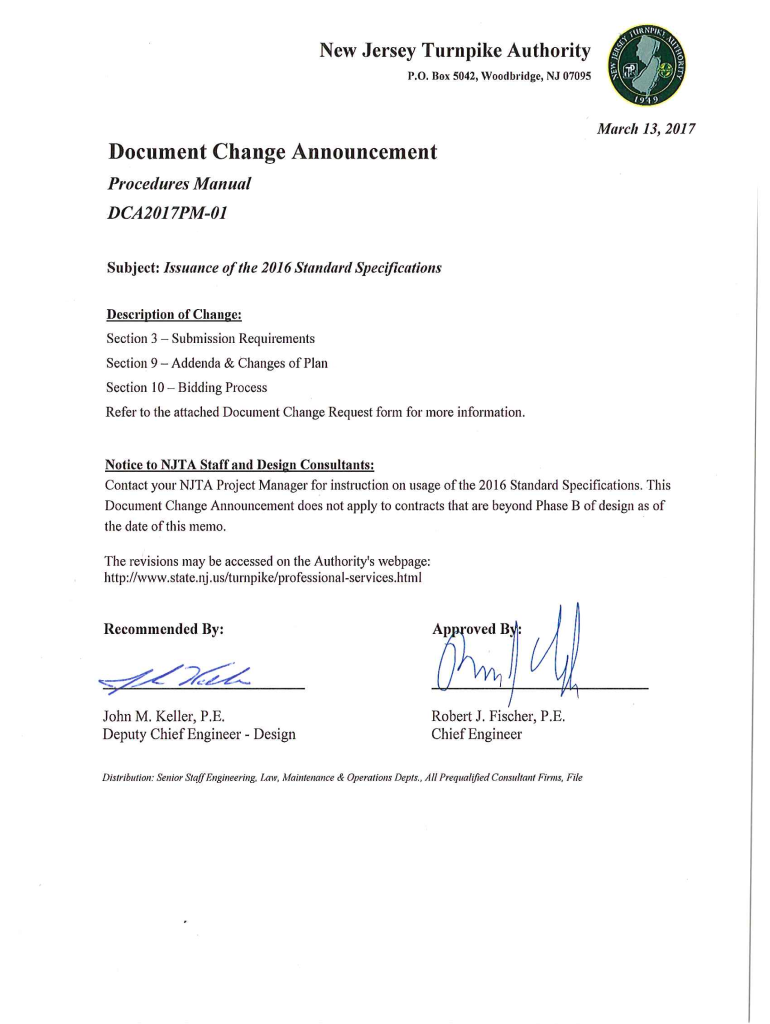 Get the free NEW JERSEY TURNPIKE AUTHORITY ENGINEERING DEPARTMENT